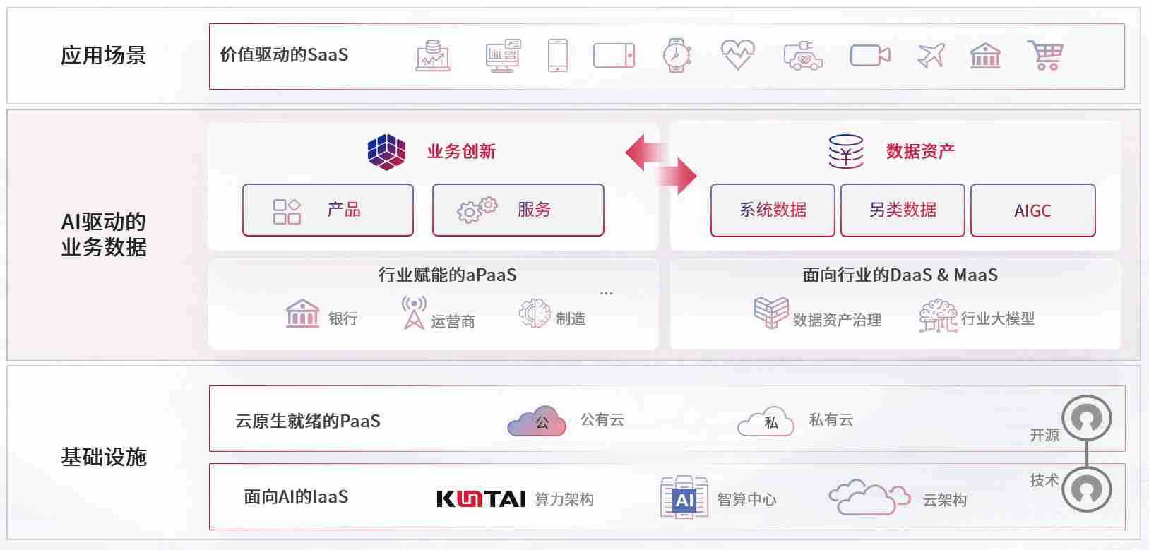 数字时代,,,,围绕企业数字化转型的关键要素,,,,PA视讯集团官网数码开创性的提出数云融合战略和技术体系框架,,,着力在云原生、、、、数字原生、、、、AI原生和信创产业上架构产品和服务能力,,为处在不同数字化转型阶段的快消零售、、、汽车、、金融、、、、医疗、、、、政企、、、教育、、、、运营商等行业客户提供泛在的敏捷IT能力和融合的数据驱动能力,,,构建跨界融合创新的数字业务场景和新业务模式,,,,助力企业级客户建立面向未来的核心能力和竞争优势,,,,全面推动社会的数字化、、、、智能化转型升级。。